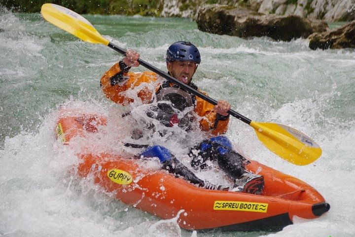 The inflatable kayak is a great boat for all who want to go kayaking without having to have great paddling skills. Due to its design, it is much more stable on the water than the traditional plastic kayak. The Guppy is a one-person kayak designed to provide the most fun for beginners and experienced paddlers on white-water day trips. The Ducky is a longer version and is ideal for one or two person.